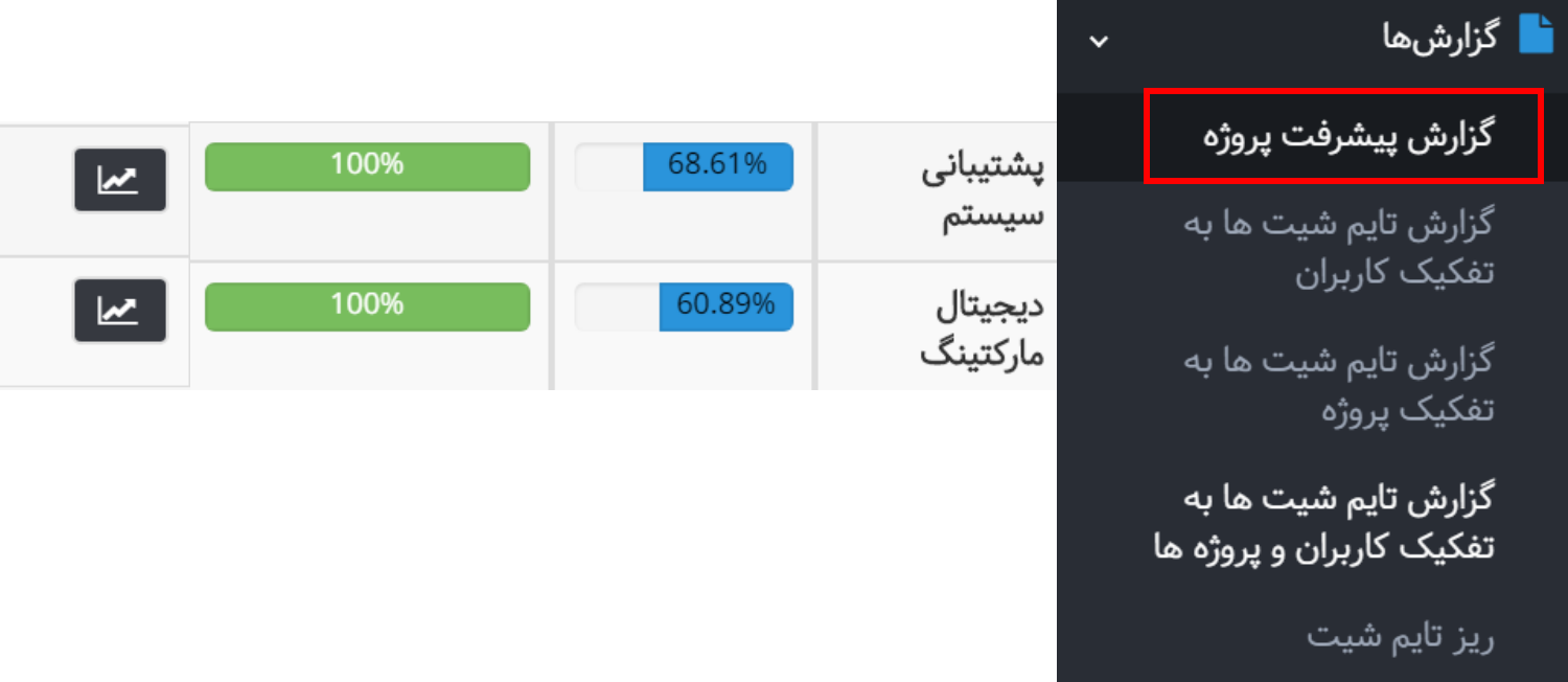 شاید بررسی روند تکمیل پروژه، نگرانی مدیران را از دورکاری کمتر کند. برای این کار در بهتایم، از گزارش پیشرفت پروژهها استفاده میشود و مدیر بررسی میکند که چند درصد از پروژه انجام شده و چه مقدار از آن باقیمانده است.
