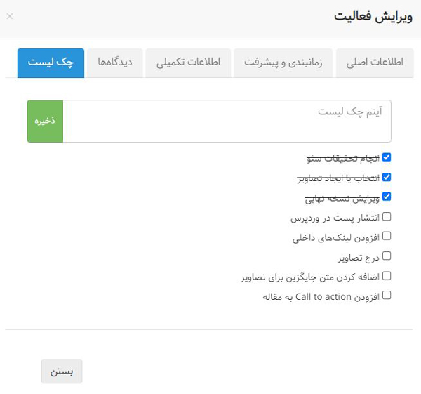 وظایف و چک لیست ها