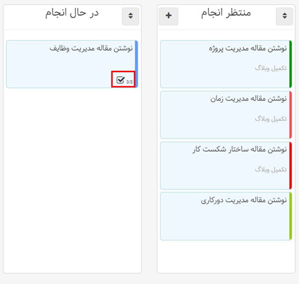 چک‌لیست بهتایم در تسک بورد