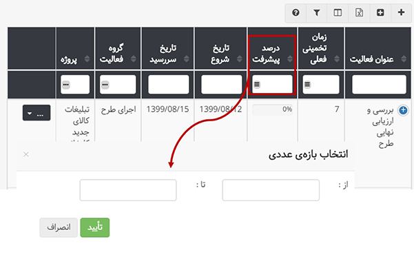 این امکان برای کاربران بهتایم فراهم شده است که درصد پیشرفت فعالیتها را به صورت دستی وارد کنند: