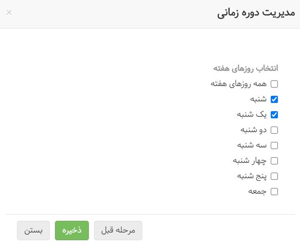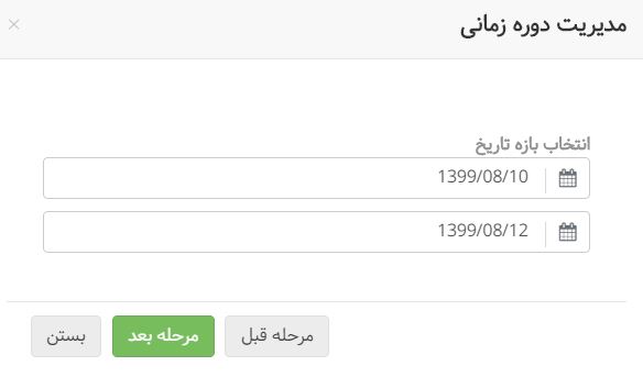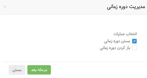 به کمک این فرم جدید که مرحله به مرحله طراحی شده است، مدیریت دورههای زمانی آسانتر شده است. به عنوان مثال در مدیریت گروهی دورههای زمانی کافیست در ابتدا عملی که میخواهید روی دورههای زمانی انجام شود را انتخاب کنید،