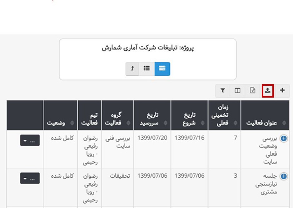 - ورود لیست فعالیتها از طریق فایل اکسل