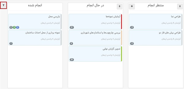 - اگر دسترسی مشاهده تمام گزارشات را داشته باشید با کلیک بر روی دکمه فیلتر میتوانید تسک بورد تمام کاربران را مشاهده نمایید.