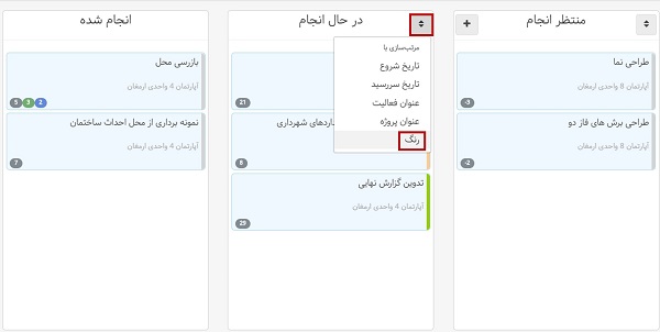 - اگر تمایل دارید فعالیتهای موجود در تسک بورد را بر حسب معیارهای دلخواهتان به رنگهای مختلف مشاهده کنید، کافیست بر روی نوار سفید رنگ کنار هر فعالیت در تسک بورد کلیک کنید تا بتوانید رنگ آن را مشخص کنید.