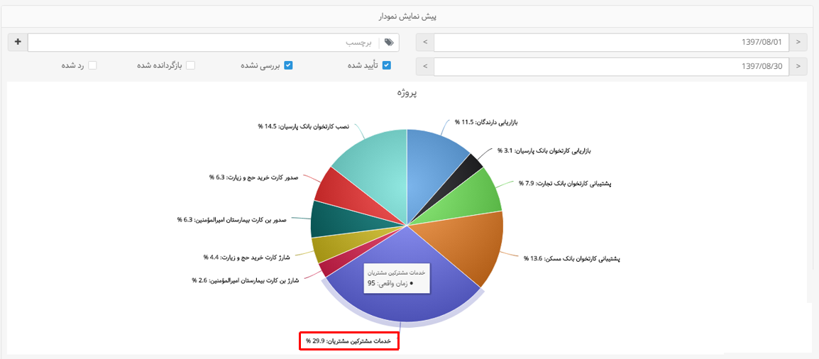 با کلیک بر روی پروژه خدمات مشترکین مشتریان، نمودار ستونی کاربران را خواهید دید.