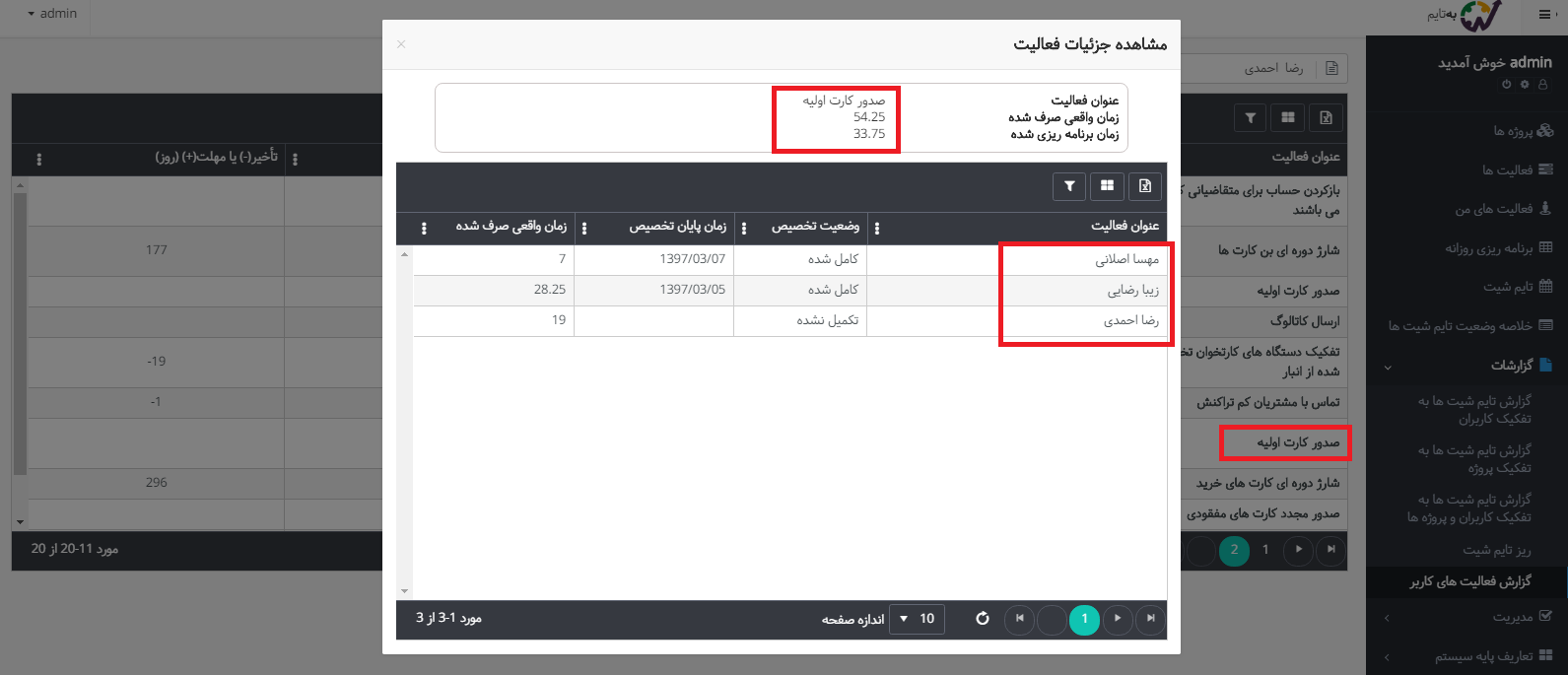 - و اینکه تا بهحال چقدر زمان توسط هریک از کاربران برای این فعالیت صرف شده است؟