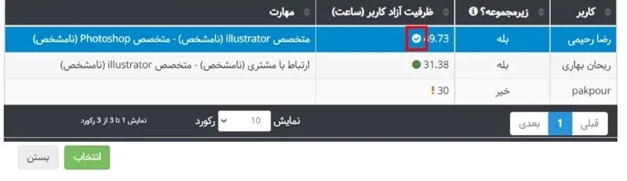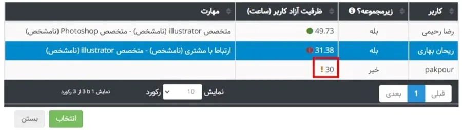 در این قسمت ظرفیت آزاد کاربران هم نمایش داده میشود تا از تحمیل بار کاری اضافی بر افراد جلوگیری شود.