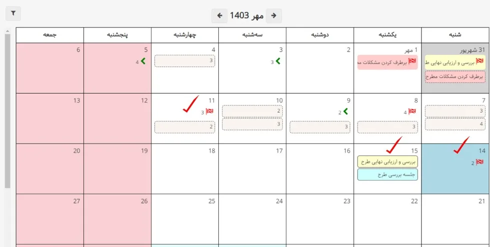 - فعالیتهای تکرارشونده فقط در روزهای تکرار در تسک بورد نمایش داده میشوند.