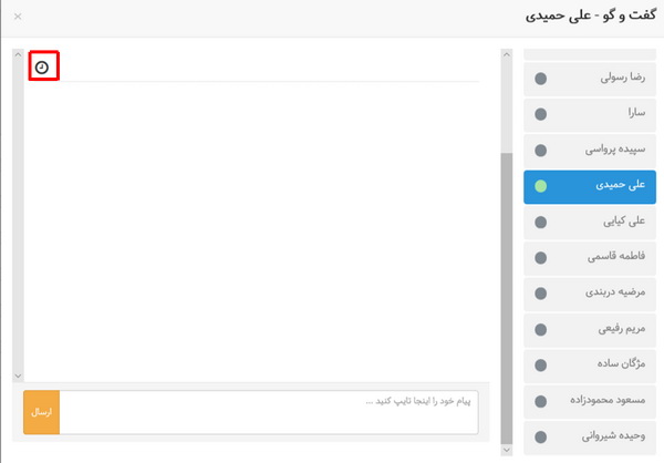 • مشاهده گفتگوهای قبلی: کاربران می‌توانند تمام مکاتبات پیشین خود با همکاران را از طریق گزینه‌ای که در تصویر مربوطه نشان داده شده است، مشاهده کنند.
